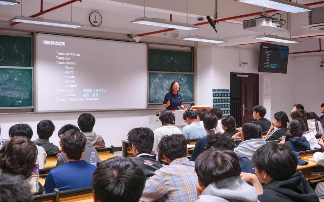 隨后,陳瑞娟老師呈現(xiàn)了一堂精彩課程。她從基礎(chǔ)語(yǔ)法講到詞根構(gòu)詞法,通過(guò)“Transportation”等實(shí)例,幫助學(xué)生在理解句子結(jié)構(gòu)的基礎(chǔ)上掌握詞匯記憶規(guī)律。同學(xué)們?cè)诨钴S的課堂氣氛中實(shí)現(xiàn)了知識(shí)的融會(huì)貫通。