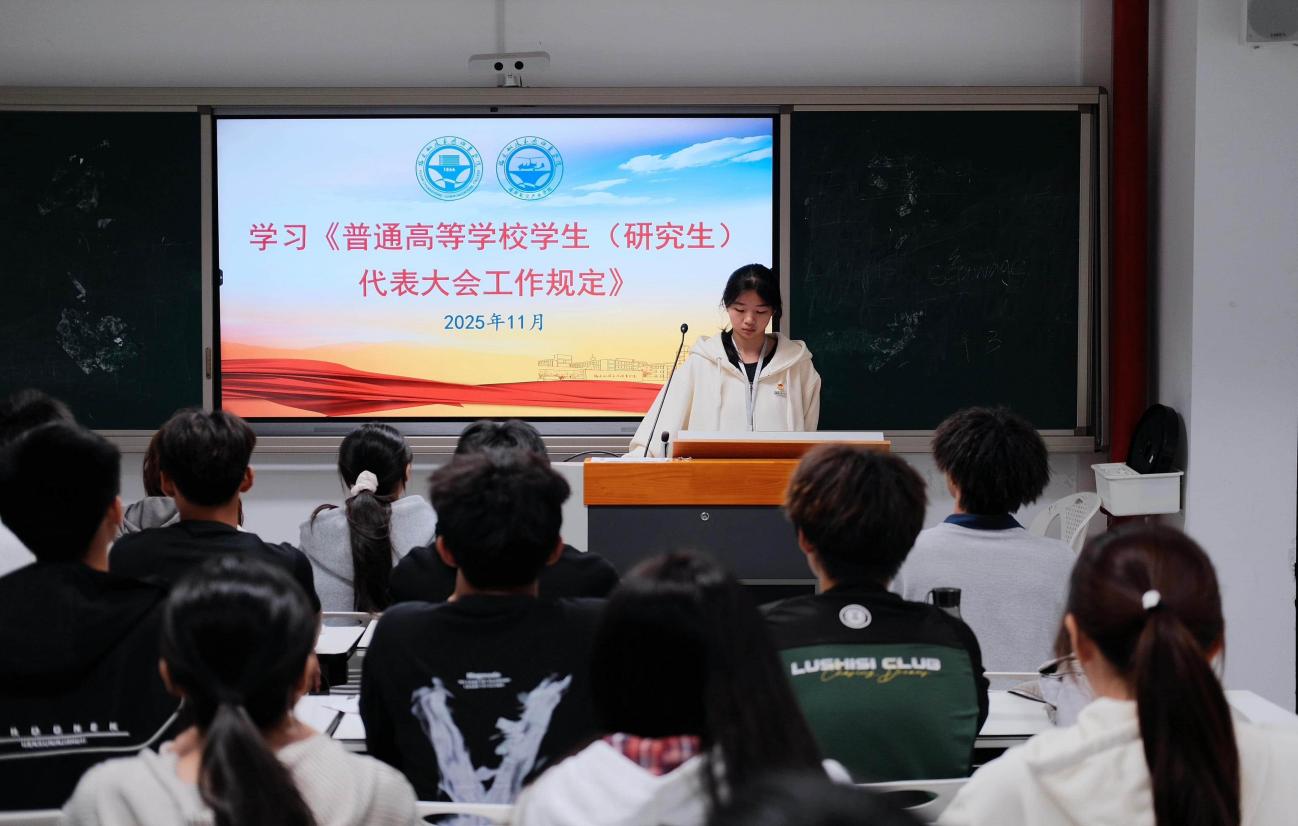 隨后,學(xué)院學(xué)生會(huì)主席團(tuán)成員程思祺為學(xué)員們解讀《普通高等學(xué)校學(xué)生(研究生)代表大會(huì)工作規(guī)定》。該文件以民主集中制為原則,明確了學(xué)生代表大會(huì)制度是學(xué)生會(huì)組織的重要制度,集中體現(xiàn)了學(xué)生會(huì)組織的政治性、先進(jìn)性與群眾性,對(duì)保障學(xué)生民主權(quán)利、推動(dòng)學(xué)生會(huì)組織健康有序發(fā)展具有重要意義。