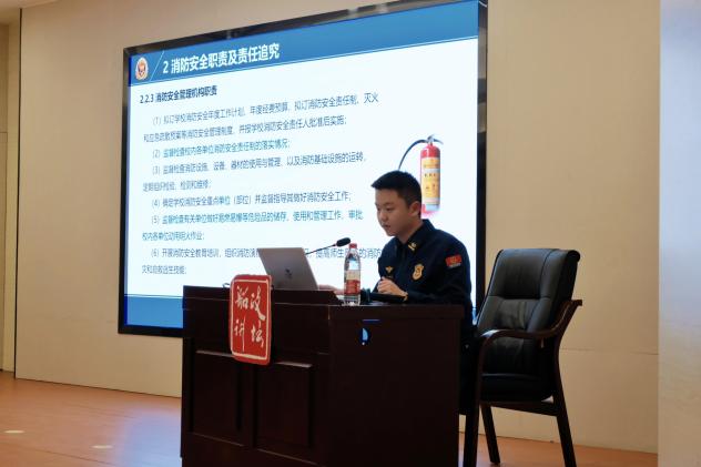 丁偉濱還結(jié)合自身在消防救援領(lǐng)域的實(shí)踐經(jīng)歷,圍繞“校園消防安全形勢(shì)分析”“消防安全職責(zé)及責(zé)任追究”“常見(jiàn)隱患問(wèn)題及整治措施”“初期火災(zāi)撲救和應(yīng)急能力建設(shè)”四大模塊,通過(guò)真實(shí)案例、數(shù)據(jù)統(tǒng)計(jì)與視頻警示,深入淺出地講解了火災(zāi)預(yù)防、責(zé)任落實(shí)、隱患整治及應(yīng)急自救等關(guān)鍵知識(shí),強(qiáng)調(diào)了“預(yù)防為主、防消結(jié)合”的消防安全理念。