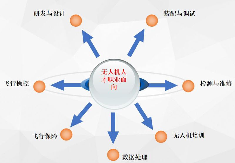 就業(yè)面向:學(xué)生畢業(yè)后,可從事無(wú)人機(jī)生產(chǎn)、測(cè)試與維修崗位,也可從事農(nóng)林植保、無(wú)人機(jī)電力巡檢、航拍測(cè)繪、國(guó)土資源勘察與監(jiān)測(cè)、應(yīng)急救援、城市交通監(jiān)控、公路巡檢、無(wú)人機(jī)培訓(xùn)、無(wú)人機(jī)教育等領(lǐng)域工作。