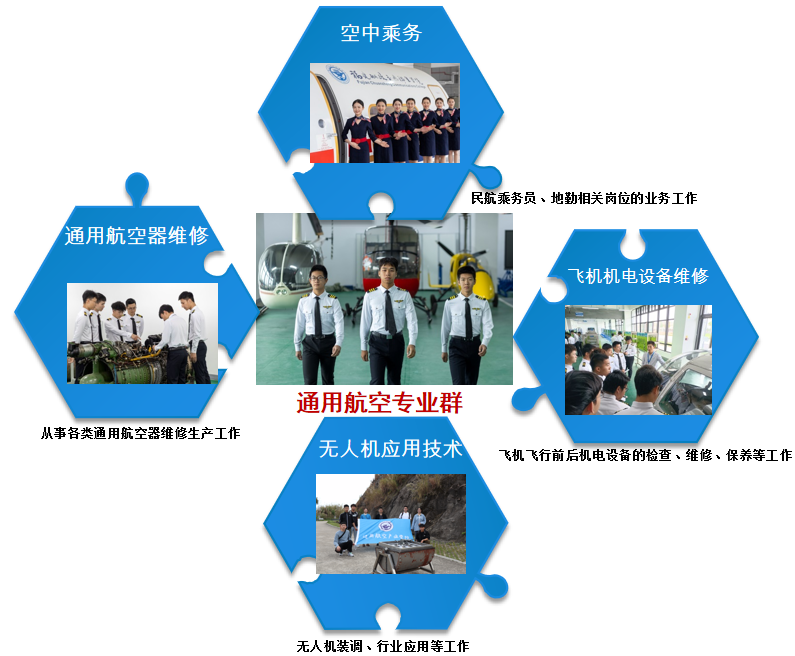 通用航空產(chǎn)業(yè)學(xué)院開(kāi)設(shè)有“通用航空器維修”、“飛機(jī)機(jī)電設(shè)備維修”、“空中乘務(wù)”和“無(wú)人機(jī)應(yīng)用技術(shù)”等專(zhuān)業(yè),按照國(guó)家民航總局標(biāo)準(zhǔn)規(guī)范開(kāi)設(shè)課程,配置實(shí)訓(xùn)設(shè)施,設(shè)置省級(jí)科技創(chuàng)新平臺(tái)“通用航空應(yīng)用技術(shù)研發(fā)中心”。同時(shí)學(xué)校同多家企業(yè)、組織建立了緊密的校企合作關(guān)系,學(xué)校先后當(dāng)選為“福建省通用航空行業(yè)協(xié)會(huì)”副理事長(zhǎng)單位、“福建省航空學(xué)會(huì)”秘書(shū)長(zhǎng)單位,獲批航空專(zhuān)業(yè)群虛擬仿真實(shí)訓(xùn)基地、航空專(zhuān)業(yè)群專(zhuān)業(yè)化產(chǎn)教融合實(shí)訓(xùn)基地、軍民融合發(fā)展教育培訓(xùn)基地、第47屆世界技能大賽“飛機(jī)維修”集訓(xùn)基地、福建省職業(yè)院校技能大賽飛機(jī)維修、智能飛行器應(yīng)用技術(shù)賽項(xiàng)競(jìng)賽基地。