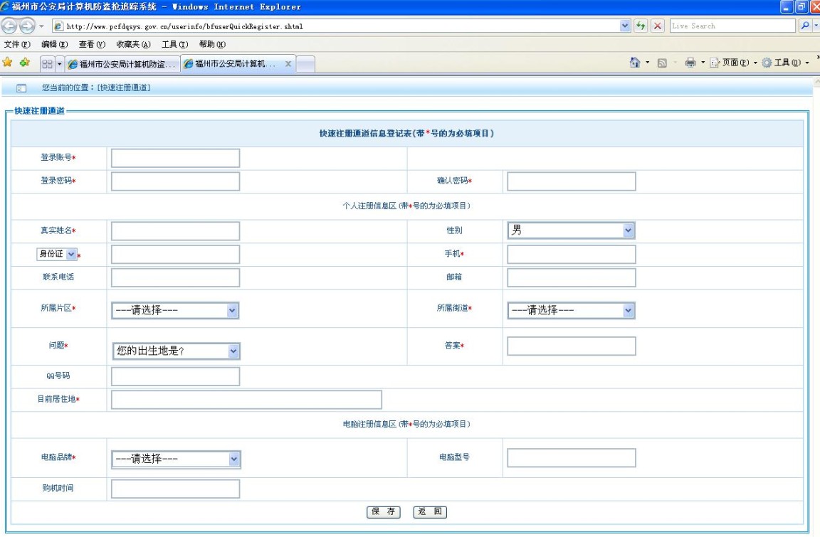 打開瀏覽器在地址欄內(nèi)輸入:http://www.pcfdqsys.gov.cn/
