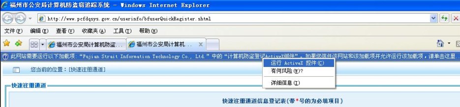 第二步:客戶組件安裝完成后,系統(tǒng)自動(dòng)跳轉(zhuǎn)至機(jī)主快速注冊頁面,若是IE6內(nèi)核版本的瀏覽器,則頁面不出現(xiàn)加載項(xiàng),直接跳至第五步,若是IE6以上內(nèi)核版本的瀏覽器則如下圖所示: