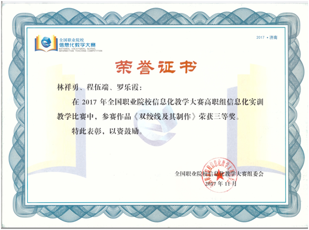 17 | 2017.08 | 2017年福建省職業(yè)院校信息化教學(xué)大賽 | 省級(jí) | 零件尺寸測量 | 二等獎(jiǎng) | 李云妹、謝祖華、林瀟麗 | ||||||||