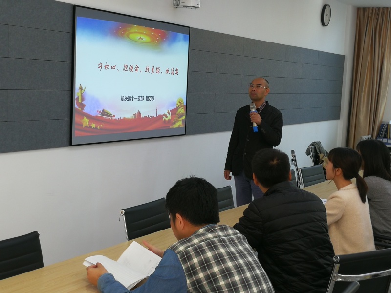 11月19日,機關(guān)第十一黨支部書記賴萬欽同志在1號樓5樓教學管理中心給全體支部黨員干部做了“不忘初心,牢記使命”的專題黨課,他主要從以下幾個問題進行講解: