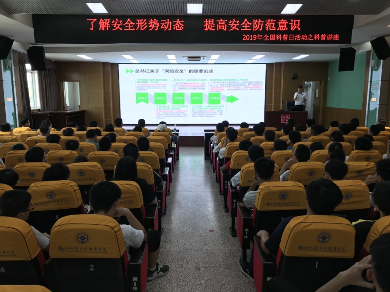 2019年9月25日下午,學(xué)院現(xiàn)代教育技術(shù)及網(wǎng)絡(luò)中心邀請北京神州綠盟科技有限公司高級安全顧問宋立煌對我院2019級新生舉辦網(wǎng)絡(luò)安全知識講座,各系部總計約350名學(xué)生到場聽取講座。