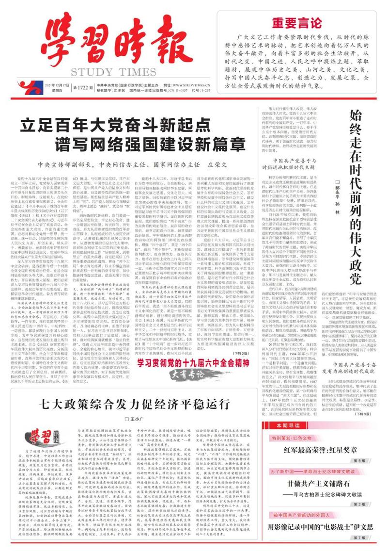 12月17日,中共中央黨校《學(xué)習(xí)時報》在頭版頭條刊發(fā)中央宣傳部副部長、中央網(wǎng)絡(luò)安全和信息化委員會辦公室主任、國家互聯(lián)網(wǎng)信息辦公室主任莊榮文署名文章。轉(zhuǎn)發(fā)如下: