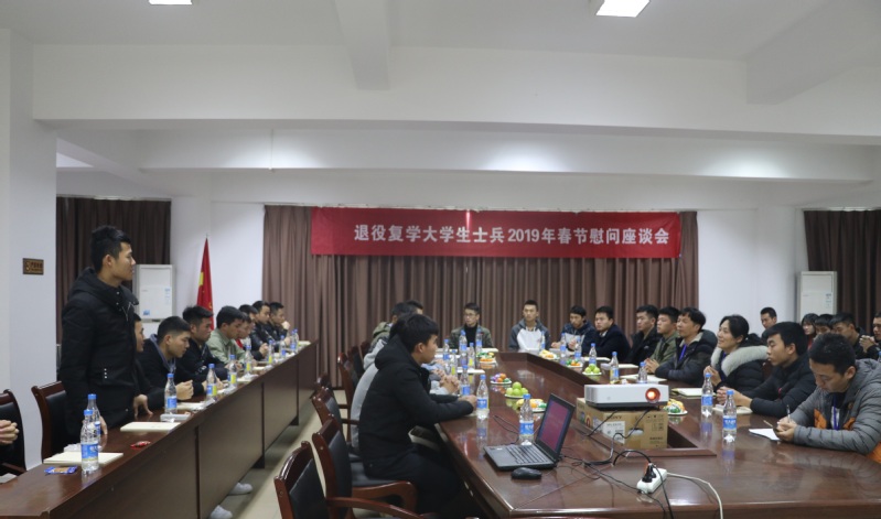 退役復(fù)學(xué)大學(xué)生士兵春節(jié)慰問座談會(huì)是我院春節(jié)前后開展入伍大學(xué)生士兵及其家屬慰問走訪系列活動(dòng)之一,今后將根據(jù)學(xué)院黨委統(tǒng)一部署,繼續(xù)認(rèn)真做好應(yīng)征入伍及退役復(fù)學(xué)學(xué)生的服務(wù)工作。