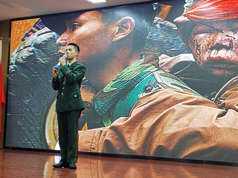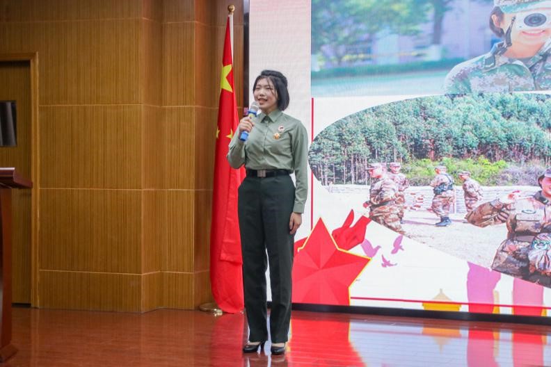 “我所在的單位,她從戰(zhàn)火硝煙中一路走來,創(chuàng)建于抗日戰(zhàn)爭,茁壯成長;她穿梭在槍林彈雨里,直面殘暴的敵人,從未退縮;她被授予白臺山英雄團稱號,并接受習(xí)近平主席的檢閱,是一支威武之師?!蓖艘鄞髮W(xué)生女士兵蔡思茵講述著她的故事,動情說到“年少不懼歲月長,彼方尚有榮光在。有國才有家,每個人都在為祖國這個大家庭在默默地努力,都在砥礪前行的路上奔跑著,也許你比別人慢,但這又如何?...... 縱有疾風(fēng)起,人生不言棄,讓我們和祖國一起共同成長!”
