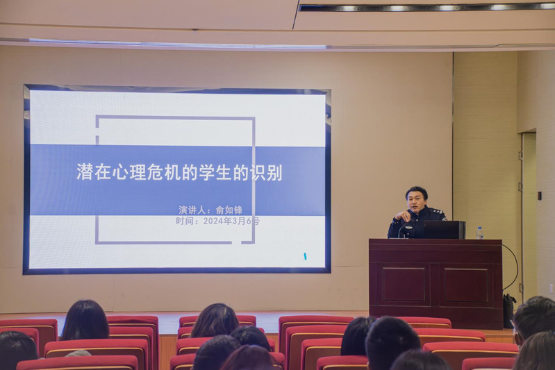 俞警官從抑郁癥、自殺、危機干預(yù)等三個方面出發(fā)。通過PPT展示、播放案例及以自己的辦案經(jīng)驗剖析學(xué)生常見心理問題等多種形式進行教育,提出了科學(xué)應(yīng)對心理問題的措施,教導(dǎo)輔導(dǎo)員們應(yīng)培養(yǎng)和提高識別危機心理的學(xué)生的意識。重點強調(diào)了原生家庭對學(xué)生心理的影響尤為關(guān)鍵,加強對有心理問題的學(xué)生的識別,從根源上解決學(xué)生的心理問題。