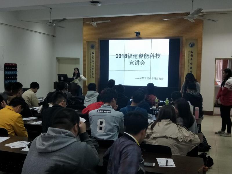 信息工程系于2018年11月2日中午12:30至下午3:00在北區(qū)2#2-1教室舉辦了信息工程系畢業(yè)生招聘宣講會。宣講人盧小姐對睿能科技公司做了簡單的介紹,說到睿能科技成立于 2007 年,總部位于福州軟件園,是專業(yè)從事針紡電控、紡織伺服驅(qū)動器、智能照明電源的研發(fā)、生產(chǎn)及銷售的高新技術(shù)企業(yè)。旗下子公司業(yè)務(wù)涉及針織行業(yè)應(yīng)用軟件研發(fā)、IC產(chǎn)品分銷、工業(yè)電氣自動化產(chǎn)品分銷及系統(tǒng)集成等。