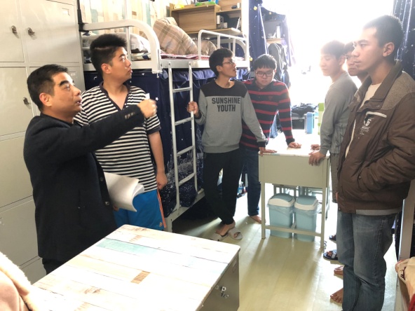 檢查過程中,每到一個宿舍,孫基書記都對學(xué)生住宿情況進行了解并詢問,要求有問題及時向輔導(dǎo)員或自律會進行反應(yīng),并叮囑學(xué)生在宿舍一定不能使用電熱毯、電吹風(fēng)、電磁爐、暖手寶、燒水壺等大功率電器,不要亂拉扯電線,注意用電安全,宿舍還要做到人走斷電、鎖門,安排值日每天打掃宿舍衛(wèi)生。書記也對宿舍衛(wèi)生做的較好的宿舍進行表揚,鼓勵同學(xué)們繼續(xù)努力,發(fā)揚優(yōu)秀品質(zhì),爭做文明宿舍。