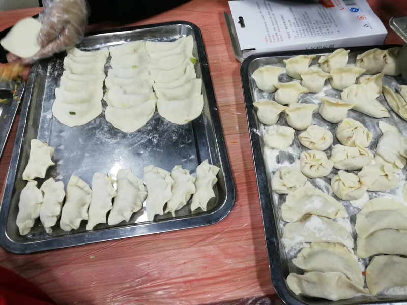 各班級(jí)同學(xué)結(jié)合南北方的習(xí)俗,有的包起了餃子、有的煮起了湯圓。同學(xué)們按照班級(jí)進(jìn)行了分組,開(kāi)始了“搓湯圓、包餃子、擺造型”。大家都迫不及待地和面、搓球、搓湯圓,我們欣喜地看到,同學(xué)們個(gè)個(gè)心靈手巧,搓出的湯圓、餃子精美別致、與眾不同。班級(jí)同學(xué)分工有致,一些同學(xué)負(fù)責(zé)揉捏面粉團(tuán),一些同學(xué)負(fù)責(zé)包餡兒搓湯圓包餃子,一些負(fù)責(zé)拍照留念,一些則負(fù)責(zé)擺造型。
