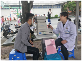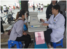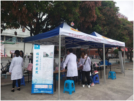 講座結(jié)束后,來(lái)自眼科醫(yī)院的醫(yī)生在文化墻為師生提供免費(fèi)眼科體檢和眼部健康知識(shí)宣傳活動(dòng),義診檢查的內(nèi)容主要包括視力表測(cè)試、專業(yè)檢測(cè)機(jī)器,宣講用眼、護(hù)眼、預(yù)防眼病知識(shí),提高師生用眼健康意識(shí)。學(xué)校70多名師生參加體檢。義診現(xiàn)場(chǎng)向師生發(fā)放了眼科疾病預(yù)防、眼部保健等宣傳資料手提袋80多份。