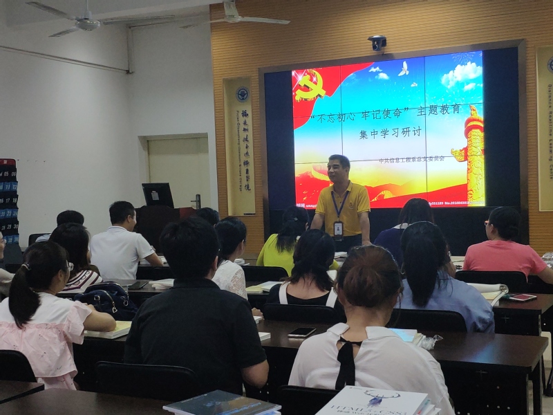 10月9日下午,信息工程系黨總支組織召開 “不忘初心、牢記使命” 主題教育集中學(xué)習(xí)研討活動,集體學(xué)習(xí)了《習(xí)近平新時代中國特色社會主義思想學(xué)習(xí)綱要》節(jié)選,黨總支孫基書記圍繞學(xué)習(xí)貫徹落實習(xí)近平新時代中國特色社會主義思想、習(xí)近平總書記關(guān)于“不忘初心、牢記使命”重要論述,以及習(xí)近平總書記在慶祝中華人民共和國成立70周年大會上的重要講話精神,帶頭進(jìn)行了發(fā)言研討。
