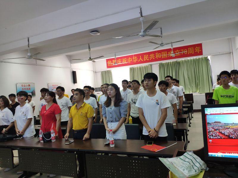 10月1日上午10時,中華人民共和國成立七十周年閱兵儀式在北京天安門廣場隆重舉行,習(xí)近平總書記在儀式前發(fā)表重要講話。信息工程系組織假期留校學(xué)生集中在2號樓201室收看現(xiàn)場直播,信息工程系黨總支書記孫基書記及信息工程系團(tuán)總支書記范碧華老師共同觀看直播。