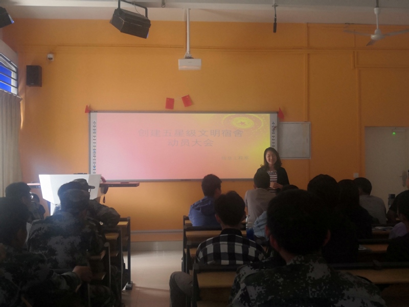 本次動員大會旨在貫徹落實“不忘初心、牢記使命”主題教育總要求,激發(fā)了同學們對“創(chuàng)建五星級文明宿舍”活動的熱情和信心,為文明宿舍創(chuàng)建活動的良好開展做了很好的精神動員。