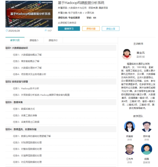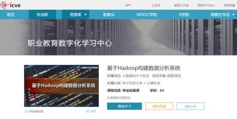 我院信息工程系參建“職業(yè)教育大數(shù)據技術與應用專業(yè)國家教學資源庫” ,負責該專業(yè)的核心《基于Hadoop構建數(shù)據分析系統(tǒng)》(2018-06)的資源建設,項目依據于《大數(shù)據技術與應用專業(yè)教學資源庫建設方案》和《大數(shù)據技術與應用專業(yè)教學資源庫建設任務書》實現(xiàn)。