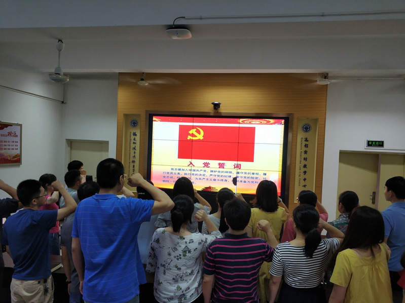 在中國(guó)共產(chǎn)黨成立99周年的特殊日子,信息工程系三個(gè)支部的全體黨員,在黨總支書記許友孝同志的帶領(lǐng)下,一起重溫了入黨誓詞,在黨旗下再一次表達(dá)了永遠(yuǎn)忠于黨、追隨黨的堅(jiān)定信仰和決心:“我志愿加入中國(guó)共產(chǎn)黨,擁護(hù)黨的綱領(lǐng)、遵守黨的章程、履行黨員義務(wù)、執(zhí)行黨的決定、嚴(yán)守黨的紀(jì)律、保守黨的秘密,對(duì)黨忠誠(chéng),積極工作,為共產(chǎn)主義奮斗終身,隨時(shí)準(zhǔn)備為黨和人民犧牲一切,永不叛黨!”在誓言的見(jiàn)證下,全體黨員的臉上露出莊嚴(yán)神圣的神情,大家心潮澎湃,為黨和祖國(guó)取得的成就激動(dòng)不已。