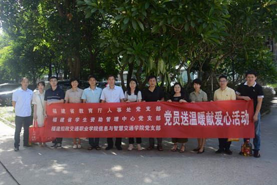 2020年8月12日,福建船政交通職業(yè)學院信息與智慧交通學院第一黨支部與福建省教育廳人事處黨支部、福建省學生資助管理中心黨支部開展支部共建活動,深入到貧困生家庭進行走訪慰問,把溫暖送到貧困生家里。
