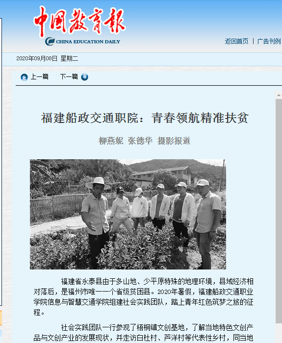 福建省永泰縣由于多山地、少平原特殊的地理環(huán)境,縣域經(jīng)濟(jì)相對(duì)落后,是福州市唯一一個(gè)省級(jí)貧困縣。2020年暑假,福建船政交通職業(yè)學(xué)院信息與智慧交通學(xué)院組建社會(huì)實(shí)踐團(tuán)隊(duì),踏上青年紅色筑夢之旅的征程。