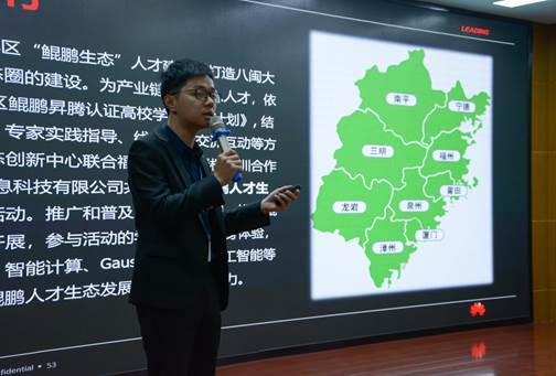 信息與智慧交通學(xué)院黨總支書記許有孝、福建鯤鵬生態(tài)創(chuàng)新中心副總經(jīng)理蘇志斌、中軟國(guó)際科技服務(wù)有限公司鯤鵬技術(shù)總監(jiān)何文斌、福建國(guó)科信息科技有限公司董聰、鯤鵬賽道執(zhí)行組組長(zhǎng)葉偉華、福建國(guó)科信息科技有限公司教育中心福州基地宗教林昌基、福建國(guó)科信息科技有限公司陳宇杰、信息與智慧交通學(xué)院學(xué)生代表以及校內(nèi)其他學(xué)院部分學(xué)生代表出席此次活動(dòng)。