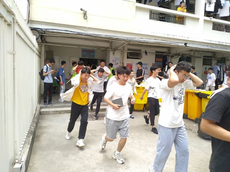 一陣警報(bào)聲拉開了演練的序幕,本次演練主要包括避險(xiǎn)、疏散兩個(gè)流程。演練開始后,全體同學(xué)在班委的組織下,迅速就地進(jìn)行應(yīng)急避險(xiǎn)。在收到緊急避險(xiǎn)結(jié)束立即疏散的指令后,大家迅速有序地從教室、宿舍撤離,沿著規(guī)劃好的路線迅速撤離,抵達(dá)指導(dǎo)避難點(diǎn)。