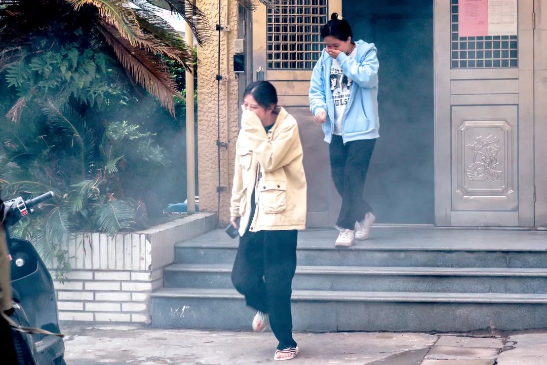 11月18日中午的12點30分,隨著警鈴響起,同學們按照疏散演練前老師普及的消防知識,指引下從指定的疏散路線快速有序撤離至安全場地。學生們從各自的安全疏散通道緊急撤離到操場后,各班委清點人數,以防有學生滯留、被困“火場”。