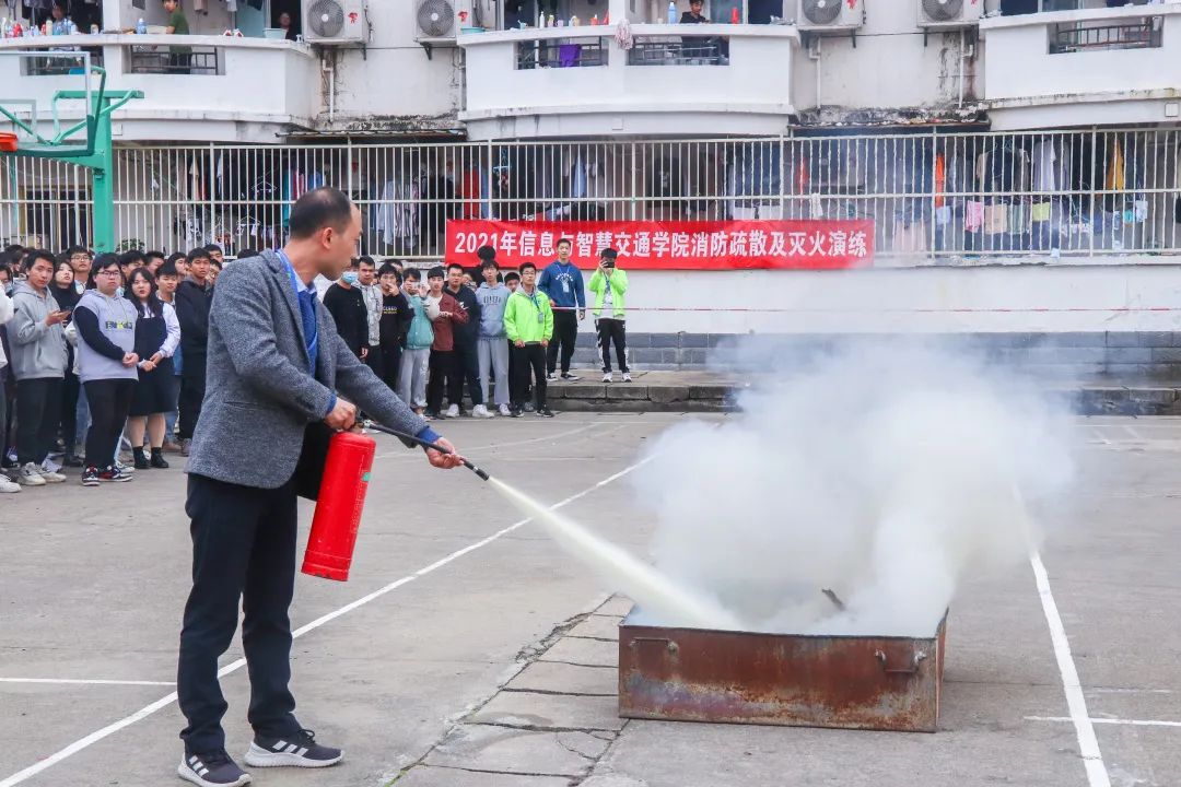 信息與智慧交通學院副院長陳自力為此次活動進行講話,他表示此次消防演練活動的開展,不僅是為了強化了師生的安全意識,了解了火災發(fā)生時的應對措施,而且也能大大增強了廣大師生的自救自護技能,希望各位同學能夠認真學習消防演練知識。