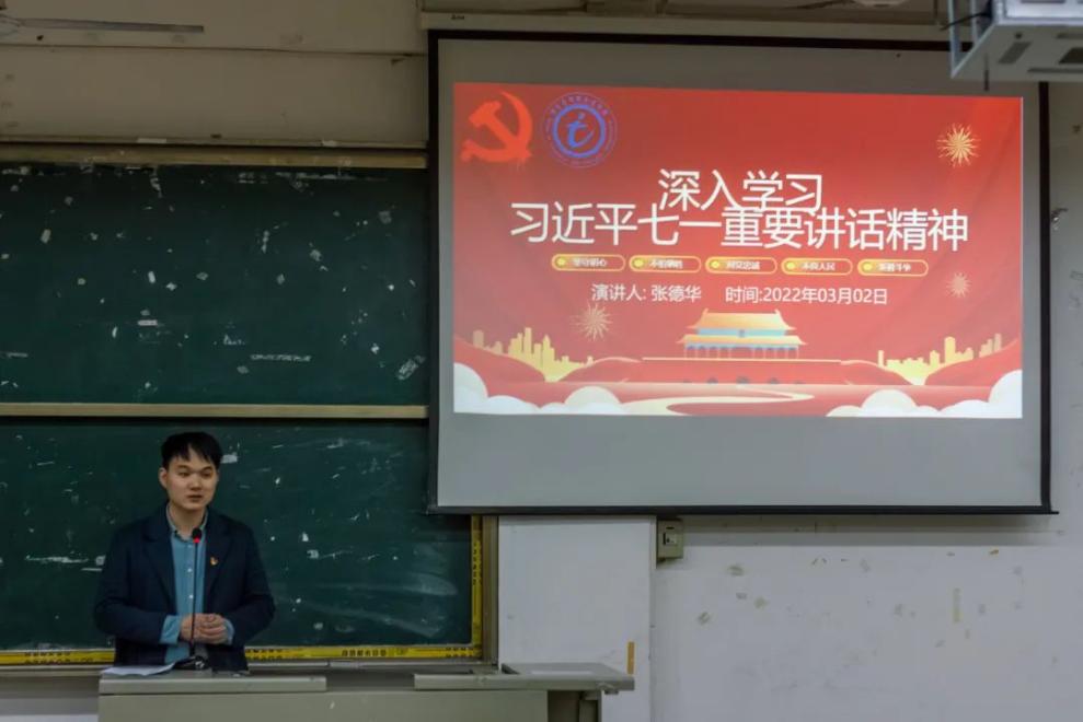 信息與智慧交通學(xué)院第一黨支部宣傳委員張德華老師以《深入學(xué)習(xí)習(xí)近平七一重要講話精神》為題,圍繞鑄就百年輝煌書寫千秋偉業(yè)、實現(xiàn)中華民族偉大復(fù)興取得的四個偉大成就、以史為鑒并創(chuàng)未來我們要做到九個必須三個方面展開。