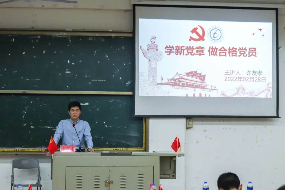 黨總支書記許友孝為全體學(xué)生開展了第一堂黨課《學(xué)習(xí)新黨章 做合格黨員》,主要從十九大對黨章的修改、學(xué)習(xí)新黨章做合格黨員、貫徹落實十九大精神、開啟新時代踏上新征程四個方面展開,對同學(xué)們寄予了殷切希望。