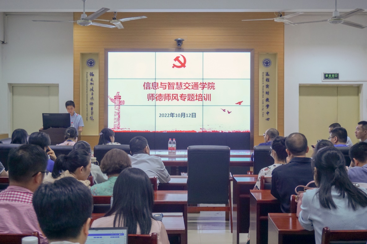 十年樹木百年樹人,教育為重,德育為先,這是師德建設(shè)重要性的深刻體現(xiàn)。教師是立校之本,師德是教育之魂。為進(jìn)一步推進(jìn)我院師德師風(fēng)建設(shè)工作,打造作風(fēng)過(guò)硬、師德高尚的教師隊(duì)伍,樹立嚴(yán)格自律、愛崗敬業(yè)、為人師表的良好教師形象。10月12日,信息與智慧交通學(xué)院組織學(xué)院全體教職工于福道園自強(qiáng)樓2-1開展師德師風(fēng)專題培訓(xùn)。此次培訓(xùn)由信息與智慧交通學(xué)院黨總支書記許友孝主持。