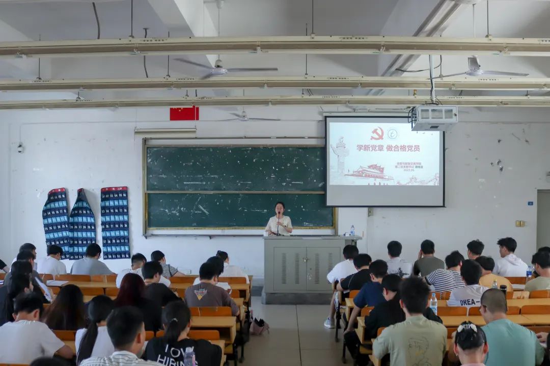 信息與智慧交通學(xué)院第二黨支部書記潘倩瀅以《學(xué)新黨章 做合格黨員》為主題,圍繞“十九大對黨章的修改”、“學(xué)習(xí)新黨章 做合格黨員”、“貫徹落實十九大精神”、“開啟新時代 踏上新征程”四個方面展開。