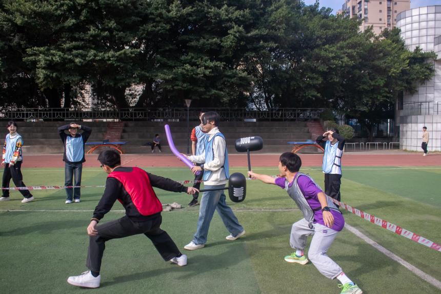 在規(guī)定范圍內(nèi),蒙眼者使用海綿棒通過(guò)感官尋找他人觸碰,參賽者需通過(guò)自己的反應(yīng)躲避,被觸碰將被淘汰,留到最后的人即為獲勝。