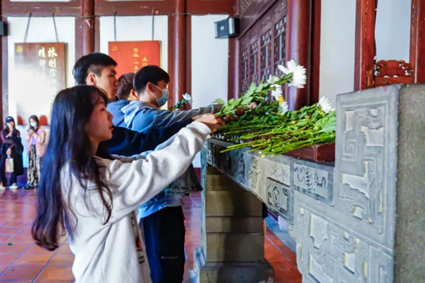 在儀式過后,老師與學員一同為革命先輩獻上花朵,表達對革命先輩的敬仰之情。