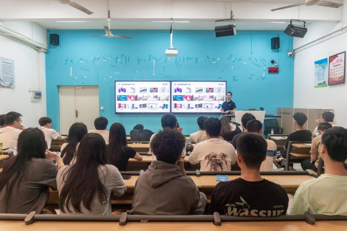 活動現(xiàn)場,企業(yè)負(fù)責(zé)人向同學(xué)們介紹了他們的公司背景,并利用圖表、視頻和其他多媒體內(nèi)容來展示更直觀的信息,同時也向同學(xué)們介紹了行業(yè)現(xiàn)狀、企業(yè)文化、企業(yè)產(chǎn)品、師資團(tuán)隊等相關(guān)信息。