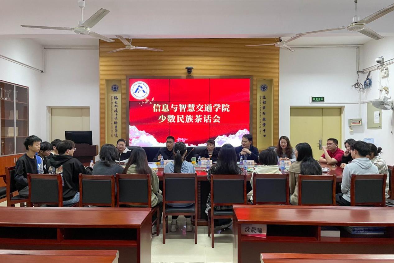 為鑄牢中華民族共同體意識,傳遞對少數(shù)民族學生的關(guān)懷和溫暖,營造民族團結(jié)一家親的良好育人氛圍, 3月20日下午,信息與智慧交通學院于在福道園自強樓2-1召開少數(shù)民族茶話會。信息與智慧交通學院黨總支副書記柳燕妮、輔導(dǎo)員張德華、輔導(dǎo)員陳妍君以及我院10余名少數(shù)民族學生代表和寶島臺灣學生參與此次茶話會。本次茶話會由信息與智慧交通學院輔導(dǎo)員周文廣主持。