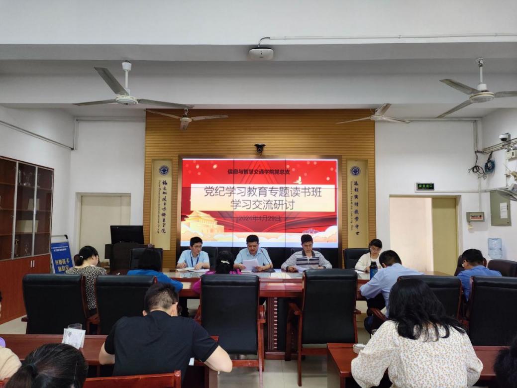 4月29日下午,信息與智慧交通學(xué)院黨總支于福道園自強(qiáng)樓2-1召開黨紀(jì)學(xué)習(xí)教育讀書班學(xué)習(xí)研討會(huì)。會(huì)議由黨總支書記許友孝主持,學(xué)院全體教職工參加學(xué)習(xí)研討。