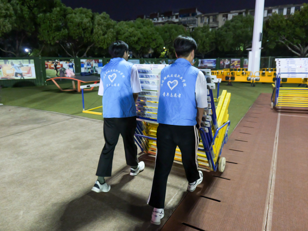 項目比賽開始前,學生志愿者們早早來到場地,進行著緊張而有序的準備工作。他們認真地清掃場地、擺放器材,為運動員們創(chuàng)造一個良好的比賽環(huán)境。