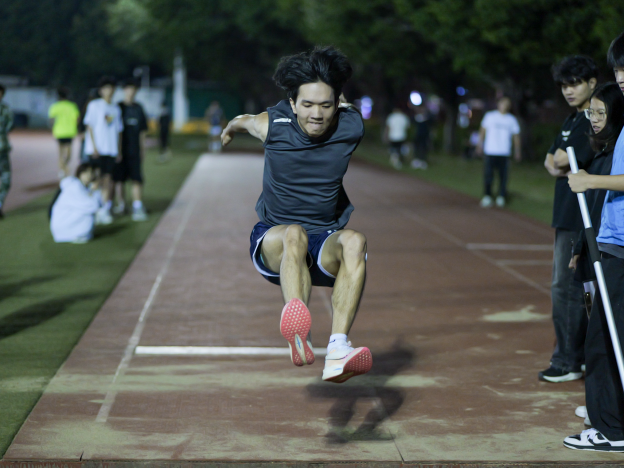 田賽場地同樣精彩不斷。跳高運動員們助跑、起跳、騰空、過桿,一氣呵成,身體在空中劃出一道優(yōu)美的弧線,仿佛要觸碰天際;跳遠運動員們快速助跑,然后奮力一躍,落地遠而穩(wěn),沙坑中留下的是他們拼搏的痕跡;鉛球運動員們用力量和技巧拋出鉛球,鉛球在空中劃過美麗的弧線,沉甸甸的鉛球承載著他們的夢想和努力。