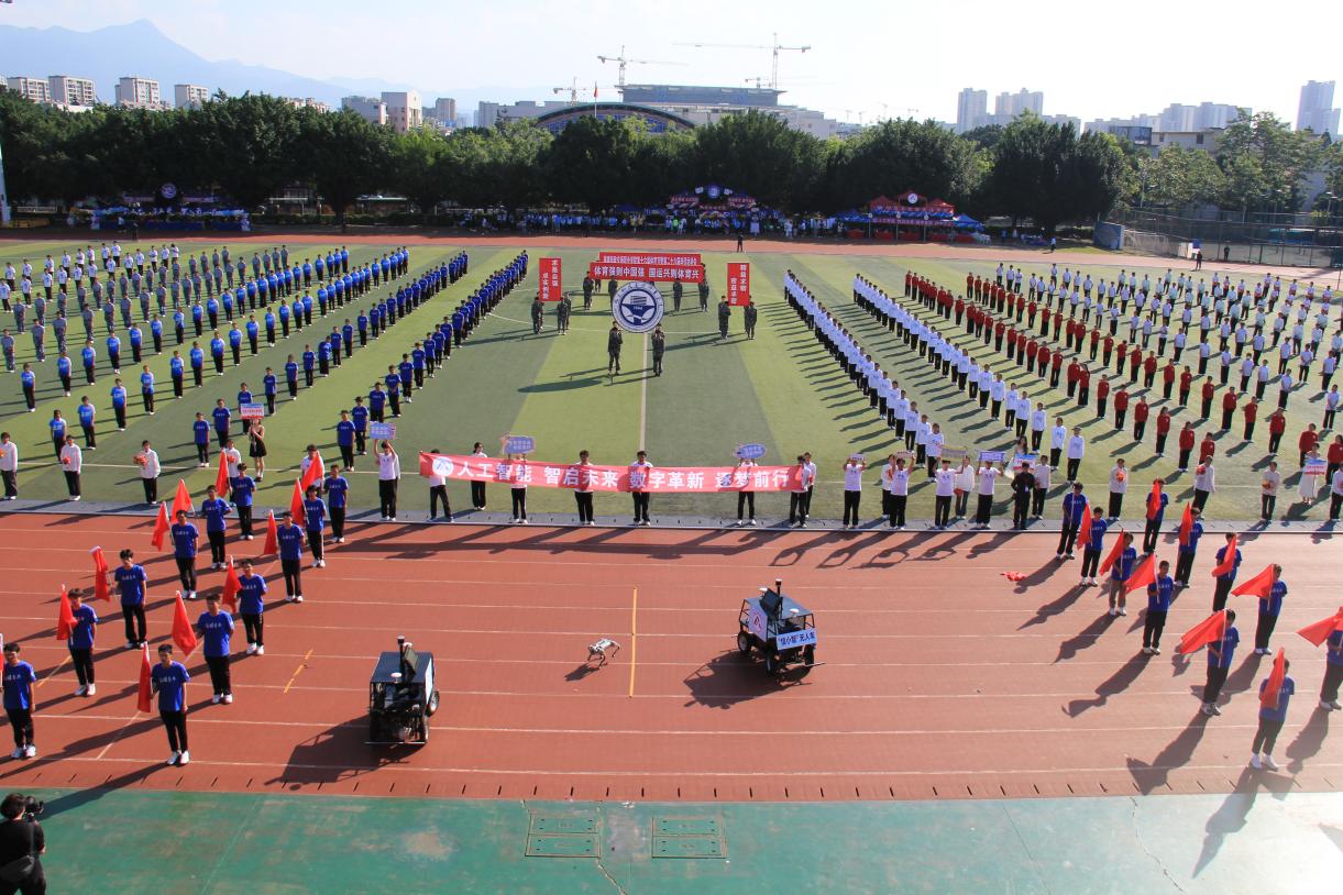 開幕式上,我院學(xué)子滿懷著飽滿的熱情和昂揚(yáng)的斗志,將青春的活力與團(tuán)隊的風(fēng)采展現(xiàn)得淋漓盡致。揮旗表演整齊劃一,那一面面鮮紅旗幟恰似翻飛的火焰,為開幕式增添了一抹絢麗奪目的色彩。尤為引人矚目的是,一只機(jī)器狗在跑道上靈活自如地穿梭,它時而輕快跳躍,時而敏捷翻滾,動作流暢自然,仿佛被賦予了鮮活的生命一般。同時,無人車也沿著跑道緩緩駛過,其車身設(shè)計簡潔大方,線條流暢順滑,處處彰顯著未來感。這一表演不僅凸顯出我院在機(jī)器人技術(shù)領(lǐng)域所取得的卓越成就,更讓現(xiàn)場觀眾深切感受到了科技所蘊(yùn)含的獨(dú)特魅力以及無限可能。