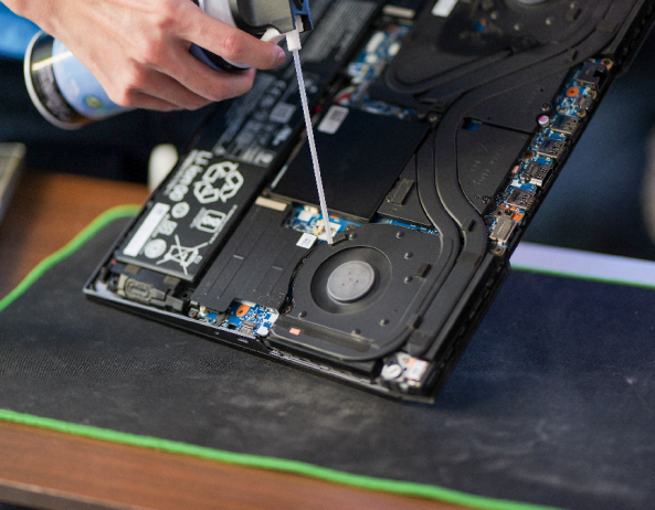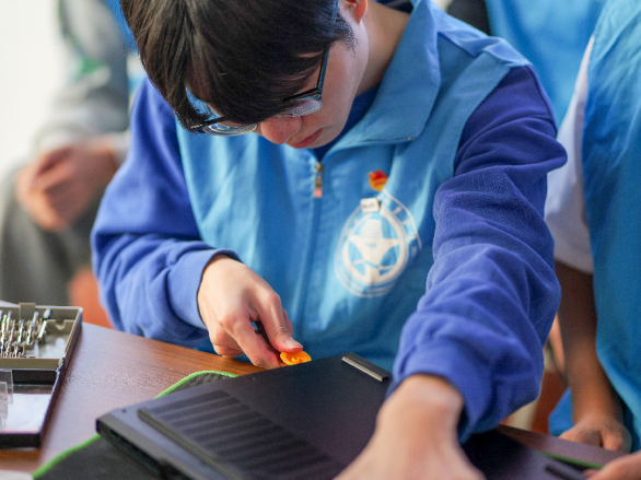 在“E芯人”志愿電腦維修服務活動中,志愿者們憑借精湛的技藝和滿腔熱情,認真的對待每一臺需要清理的電腦。他們小心地拆卸電腦后蓋,使用專業(yè)的清潔布和吹氣筒,仔細清理硬件上的灰塵和污漬,以及散熱通道中的絮狀物。