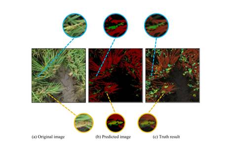 該研究由我院林少丹教授作為第一作者,通過結(jié)合ConvNeXt-Large骨干網(wǎng)絡(luò)和全局注意力機(jī)制(GAM),提出了一種新型的語義分割模型ConvGAM,能夠有效檢測水稻穗瘟病,并在復(fù)雜環(huán)境下表現(xiàn)出色。研究結(jié)果表明,ConvGAM模型在測試集上的整體準(zhǔn)確率達(dá)到91.4%,平均交并比(IoU)為79%,F1得分為82%。該模型通過引入Focal Tversky Loss損失函數(shù),顯著提升了在數(shù)據(jù)不平衡情況下的檢測精度,特別是在罕見和嚴(yán)重病害類別的識別上表現(xiàn)優(yōu)異。