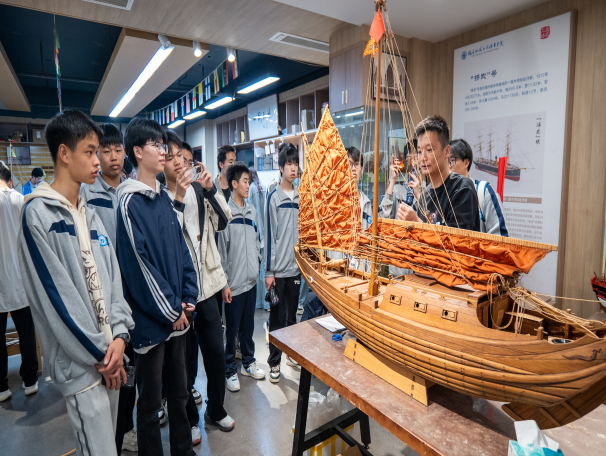 在信息學院黨政領(lǐng)導4人陪同下,古田縣第六中學師生先后實地探訪了嚴復館、移動互聯(lián)世賽實訓基地、先進艦船模擬器實訓中心、航空實訓基地、中式郵輪五高實訓中心、智能網(wǎng)聯(lián)汽車實訓中心、公共安全產(chǎn)教融合實訓基地、智慧安全工地、應急救援中心、海洋航行器創(chuàng)研工坊、數(shù)字化船廠等特色育人場景。