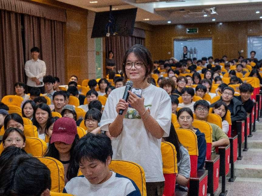 講座結(jié)尾設(shè)置了氣氛熱烈的互動(dòng)環(huán)節(jié),陳弘警長精心準(zhǔn)備了與電信詐騙相關(guān)的核心問題進(jìn)行現(xiàn)場提問,并給同學(xué)們贈(zèng)予了象征安全守護(hù)的警察玩偶作為獎(jiǎng)勵(lì)。同學(xué)們積極舉手,踴躍發(fā)言,展現(xiàn)出對反詐知識(shí)的高度關(guān)注和良好掌握。