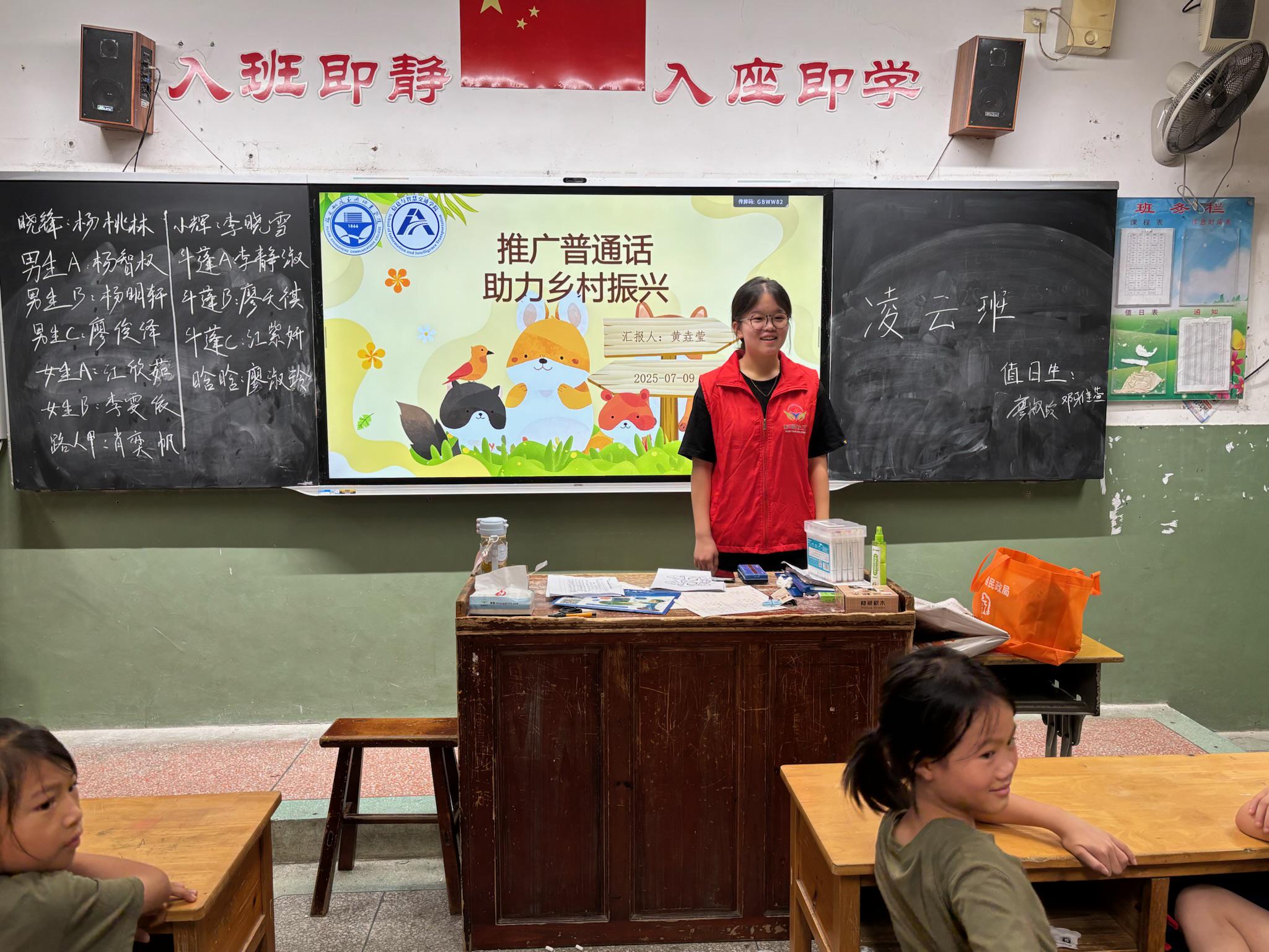 普通話,是打破地域隔閡的紐帶,更是鄉(xiāng)村振興中文化交融的重要基石。每一句標(biāo)準(zhǔn)的發(fā)音,都承載著溝通的便利,寄托著鄉(xiāng)村發(fā)展的無限可能。為了讓這份意義深入童心,促進(jìn)團(tuán)精心設(shè)計(jì)了"普通話小課堂",通過趣味繞口令、情景對話等形式,讓語言學(xué)習(xí)充滿歡聲笑語。孩子們清脆的朗讀聲里,飽含著對語言魅力的領(lǐng)悟——這既是對文化傳承最生動(dòng)的實(shí)踐,也是對鄉(xiāng)村未來最美好的期許。當(dāng)標(biāo)準(zhǔn)的普通話在田野間回蕩,鄉(xiāng)村振興的道路正因語言的橋梁而更加寬廣。