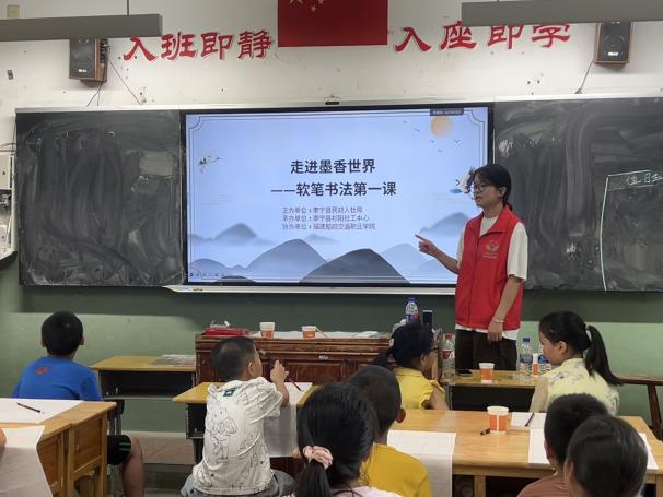 在泰寧的夏日課堂,支教的青春身影熠熠生輝。促進(jìn)團(tuán)俯身教孩子們玩轉(zhuǎn)魔方,指尖轉(zhuǎn)動(dòng)間,是思維啟迪的奇妙旅程;站上講臺講“軟筆書法第一課”,筆觸游走時(shí),讓墨香沁入童真。這一趟支教行,以知識為舟,載著熱忱與希望,在孩子們心湖泛起波光,也讓青春在鄉(xiāng)野支教中,書寫照亮成長的溫暖注腳 。