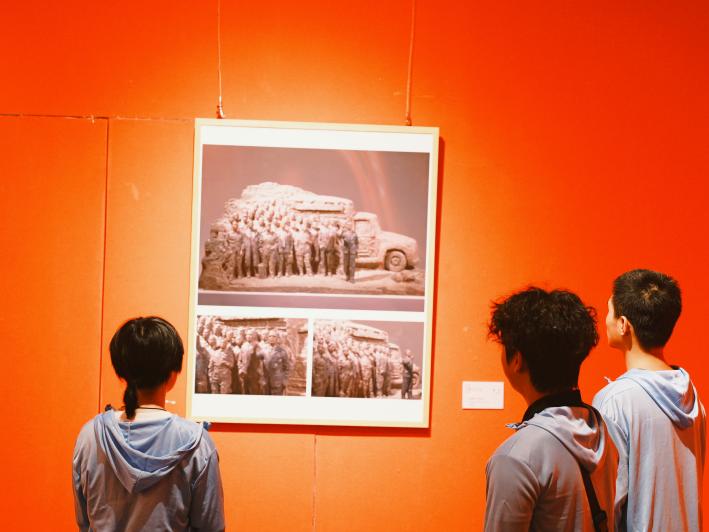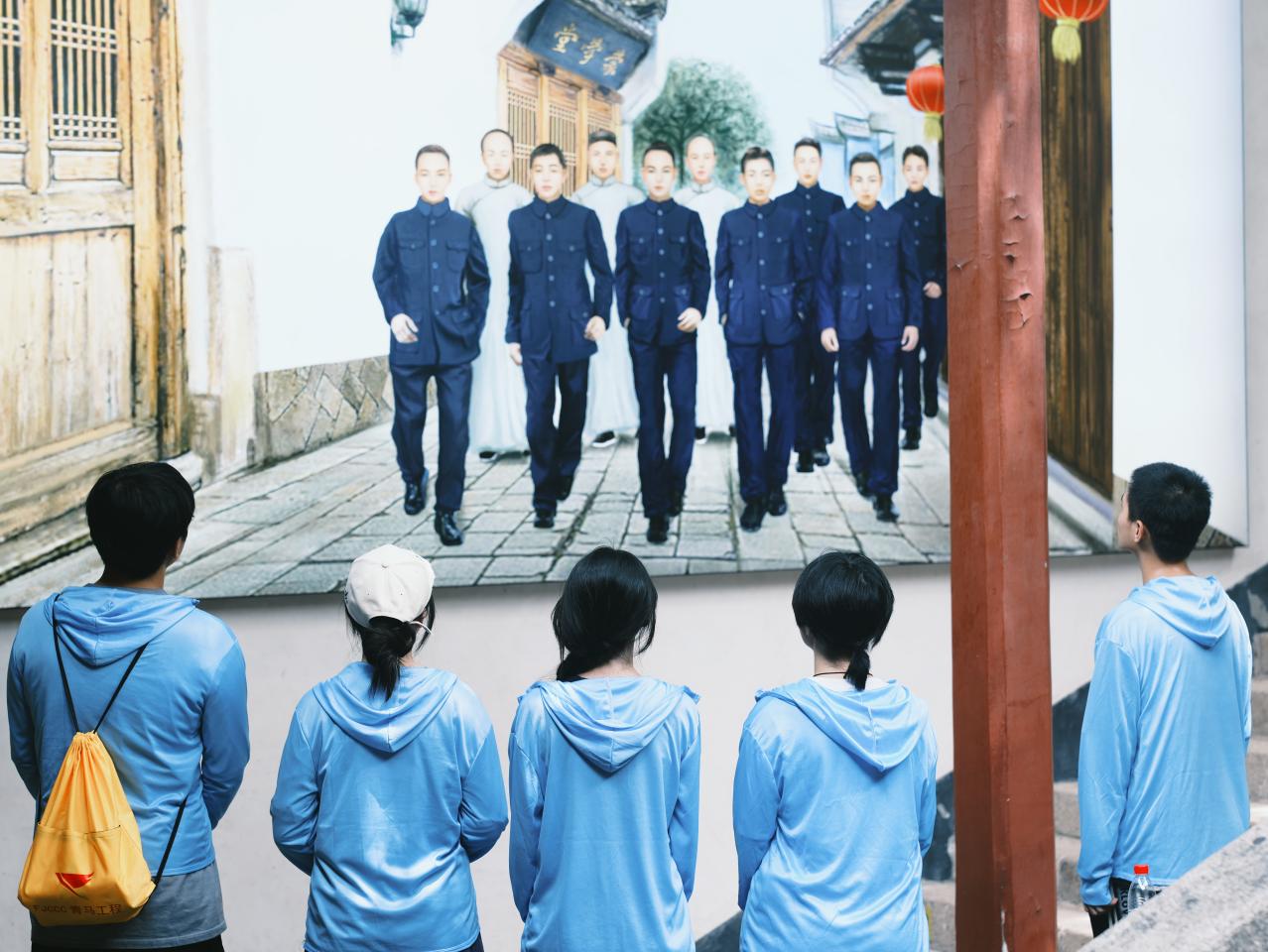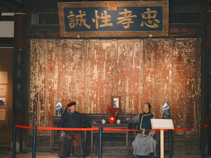 (實(shí)踐團(tuán)成員觀傳統(tǒng)忠孝場景)
