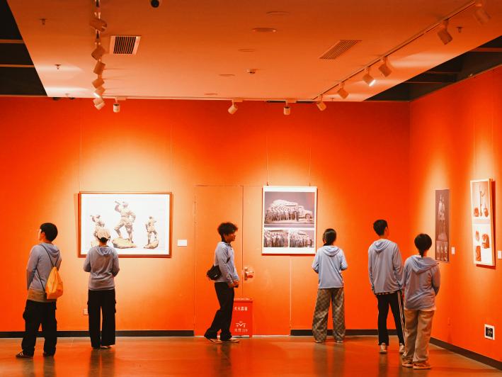 實(shí)踐團(tuán)來到福建省美術(shù)館,參觀 “紀(jì)念抗戰(zhàn)勝利 80 周年 —— 福建省第八屆青年美術(shù)作品展”。80余件油畫、雕塑、版畫排成一條時(shí)光隧道。油畫《閩海烽火》里天空是燃燒的橙紅,海面是沉郁的深褐,仿佛能聽見炮火在耳邊炸響;雕塑《最后的家書》只有薄薄一頁銅紙,卻重得讓展廳瞬間安靜。大家放慢腳步,不敢大聲呼吸,好像怕驚動(dòng)那段歷史。留言墻前,有人寫下“今日盛世,已如你們所愿”,也有人只畫了一顆小小的愛心。走出館門,陽光刺眼,卻沒人抬手遮,有人輕聲說:“原來和平是有顏色的,是畫里的火光熄滅后,留在我們眼里的光。”