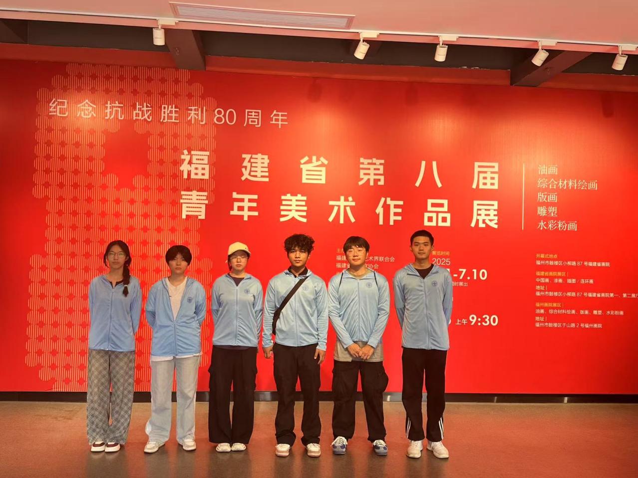 (實(shí)踐團(tuán)成員在福建省第八屆青年美術(shù)作品展的合影)